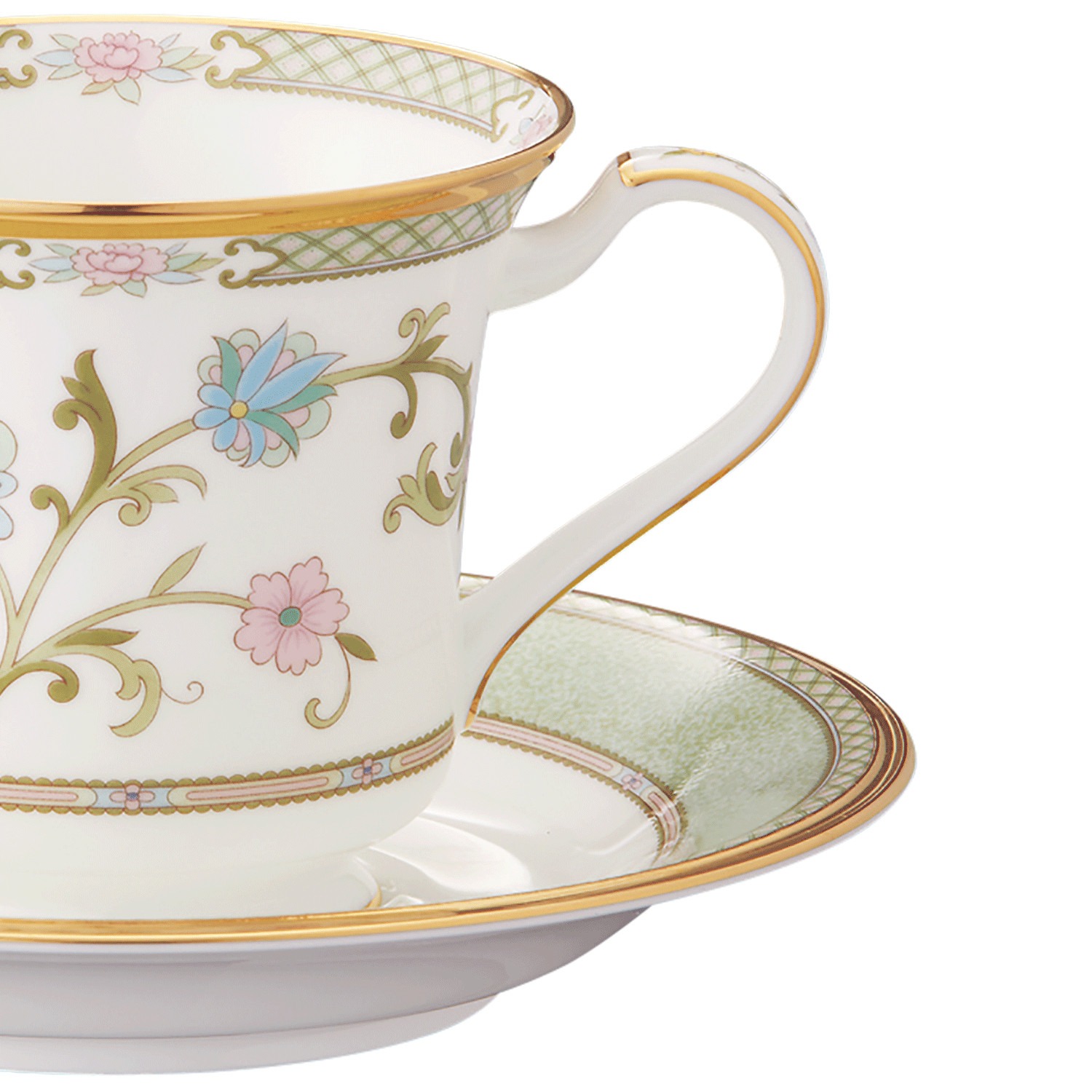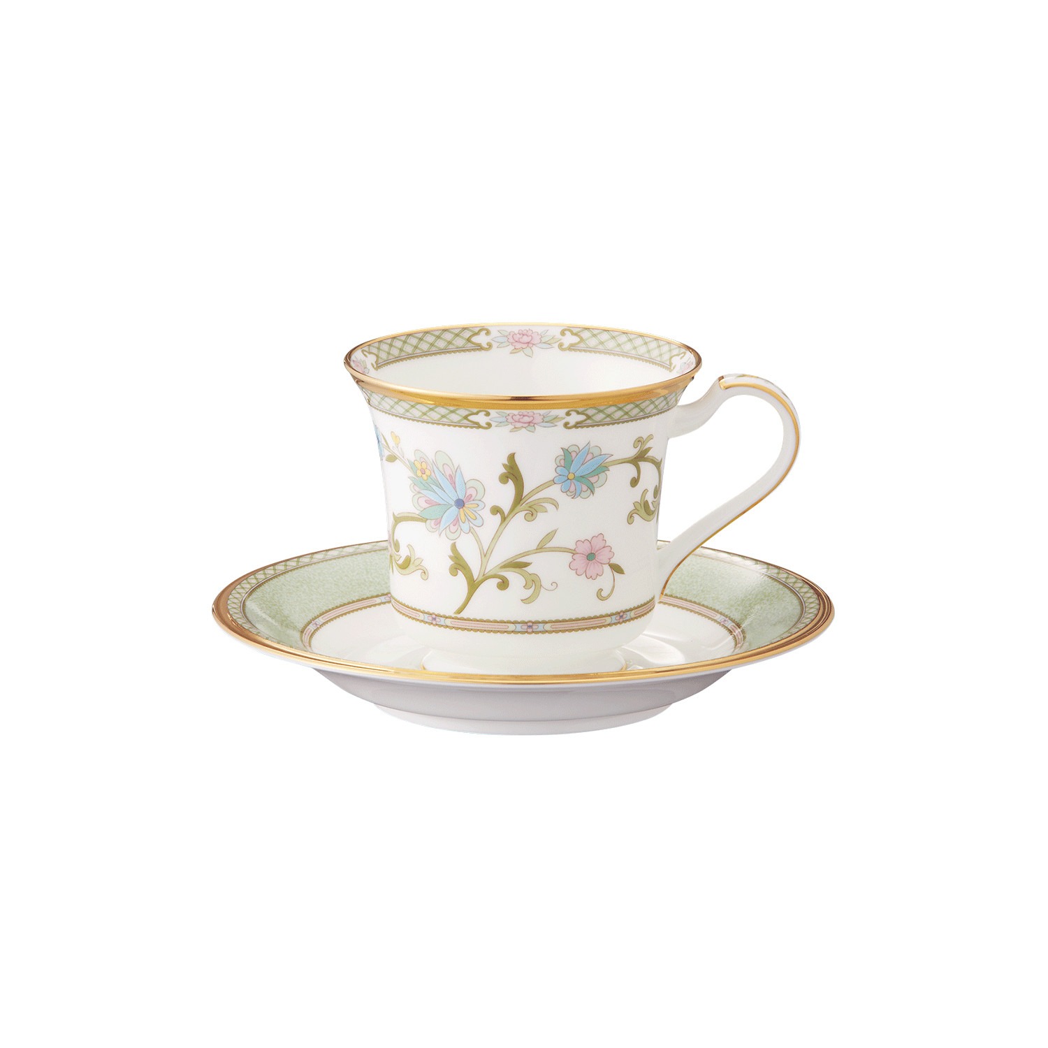 カップに咲き誇る花々は吉野山の桜、ソーサーの緑色は裾野の緑をイメージ。