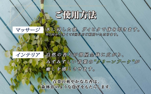 サウナやお風呂の中で全身を叩いてマッサージ(ウィスキング)ができます。