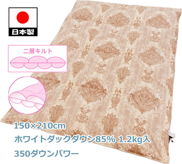 高熱で攪拌する「パワーアップ加工」と除塵しながらの「オゾン加工」を施した350ダウンパワー以上の良質なホワイトダックダウン85%が1.2kgも入れてあり、とてもふわふわで暖かいです。