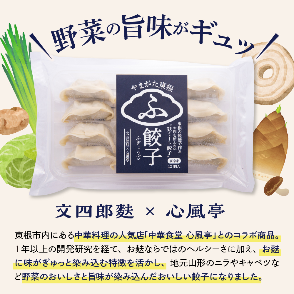 1年以上の開発研究を経て、お麸ならではのヘルシーさに加え、他の食材の味わいがぎゅっと染み込む特徴を活かし、地元山形のニラやキャベツなど野菜のおいしさと旨味がたまらない餃子になりました。