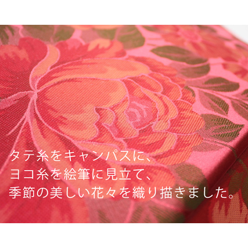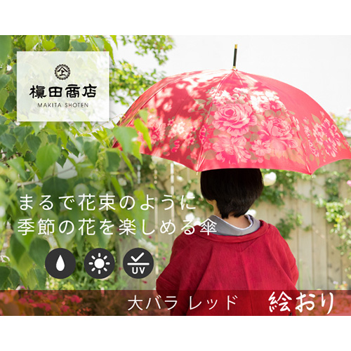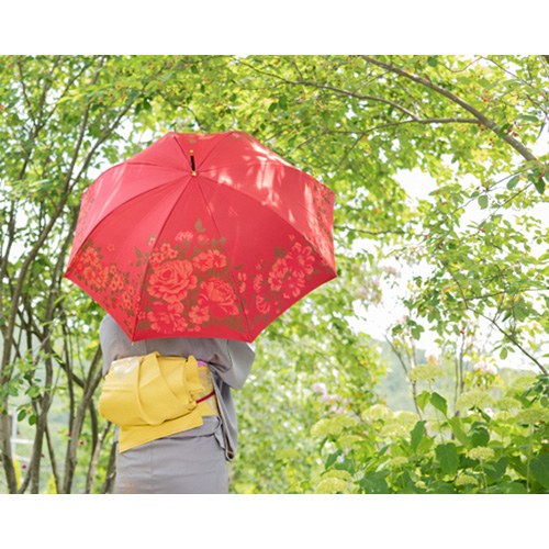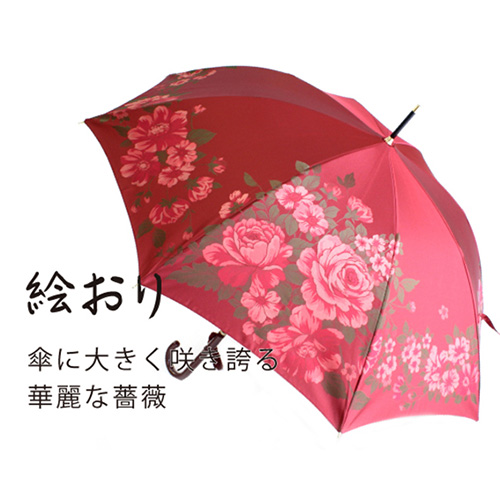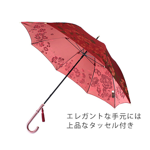 No.317 高級織物傘【婦人長傘】赤系・華やかさ溢れる存在感「大バラ柄」絵おり-[n0317_mak_A]