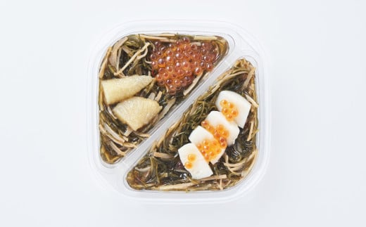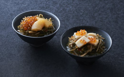 自社特製の松前漬をベースにし、国産のいくら、国産ほたてスライス、数の子を乗せ、見た目にも華やかな海鮮漬が完成しました。セパレートタイプなのでお好きな方のみ解凍しお召し上がりいただけます。