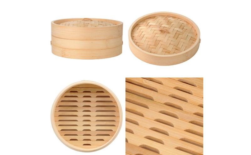 原産国 中国 / 材質 本体:竹、ラタン 芯材:ポプラ材 / 商品サイズ 直径18×高さ8.5cm / [取扱い上の注意]●素材の特性上、切れ端やささくれなどが出ている場合がありますのでご注意ください。●素材の特性上、形状・風合い・色差があります。●ご使用中、細かい素材が脱落する場合があります。●食材によりにおいや移りや色移りする場合があります。●直火、オーブン、電子レンジ、食器洗浄乾燥機は使用できません。●本体を重ねて使用する場合は2段まででご使用ください。●蓋の上に本体をのせて使用しないでください。倒れる恐れがあります。●重ねる際はずれないように重ねてください。倒れたり、蒸気が漏れる恐れがあります。●使用中は熱くなりますので注意してください。●鍋に蒸篭を直接のせて使用したり、大きな炎で加熱すると焦げる恐れがあります。●蒸し板を使用する場合は、段差に対して斜めにならないよう平らに置いてください。倒れたり、蒸気が漏れる恐れがあります。[お手入れ方法]●ご使用後は水けをよく拭き取り、直射日光を避けてよく乾燥させてから保管してください。●蒸篭を洗う際に洗剤は使用しないでください。●蒸篭を洗う際は水につけずに汚れた部分を湯で湿らせた布でふいてください。汚れがひどい場合はぬるま湯でさっと洗ってください。●変形やカビの原因となりますので、つけ置きしないでください。●保管の際にポリ袋に入れることは避けてください。●素材の特性上、黒ずみが生じる場合があります。
