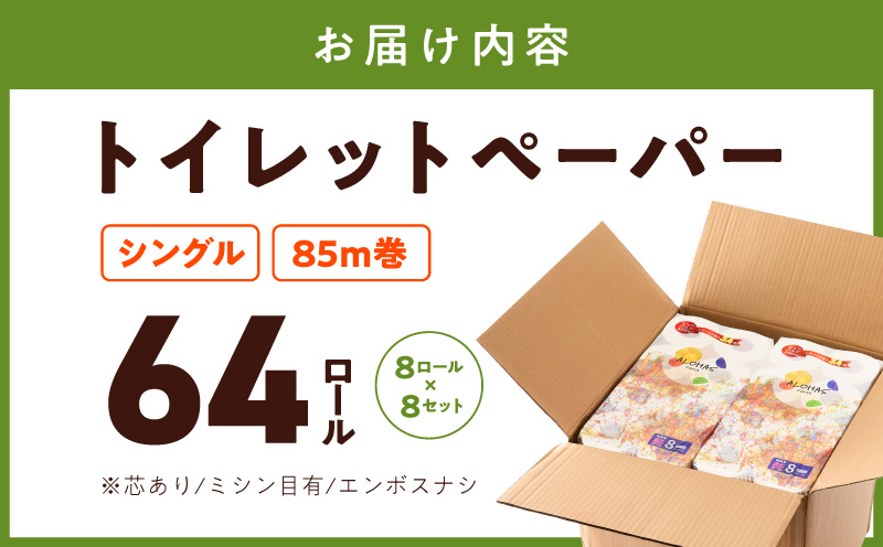 トイレットペーパー シングル85M巻 64ロール(8ロール×8セット)