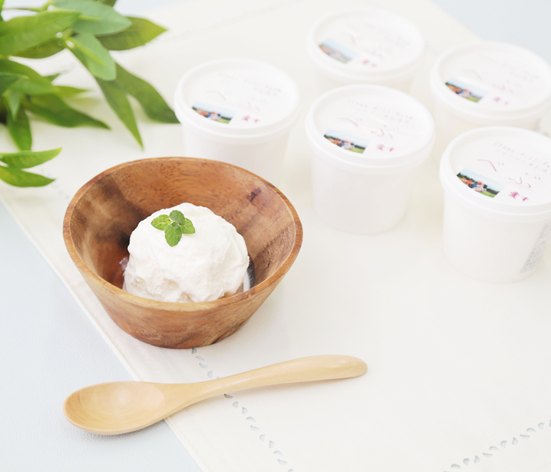 120mlのカップの中は高原町の自然がギュッ!と濃縮。地元で『べぶ』とは牛のこと。『べぶ』のおっぱいから頂いた新鮮なお乳のミルクアイスです。