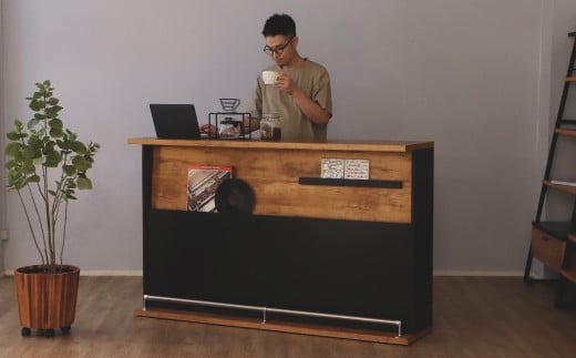 このカウンターは、木目の味わい深さとマットな黒の組み合わせが見事な調和を生み出し、どんな空間にも上品なアクセントを与えてくれます。