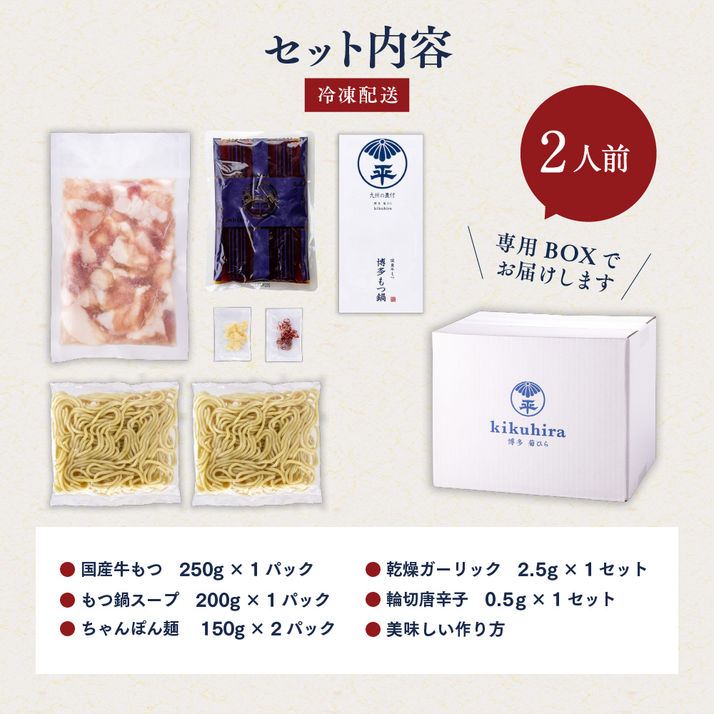 ・福岡県の老舗製麺所がもつ鍋の〆に合うように独自ブレンドの小麦に熟成製法を用いて製造することで、もちもちで歯切れの良い麺に仕上がっています。