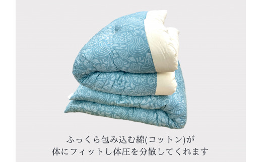 天然植物繊維のコットンが汗を吸い、日に干せばふっくらと気持ち良く、肌に馴染んで心地良いのが、もめん布団の特徴です。