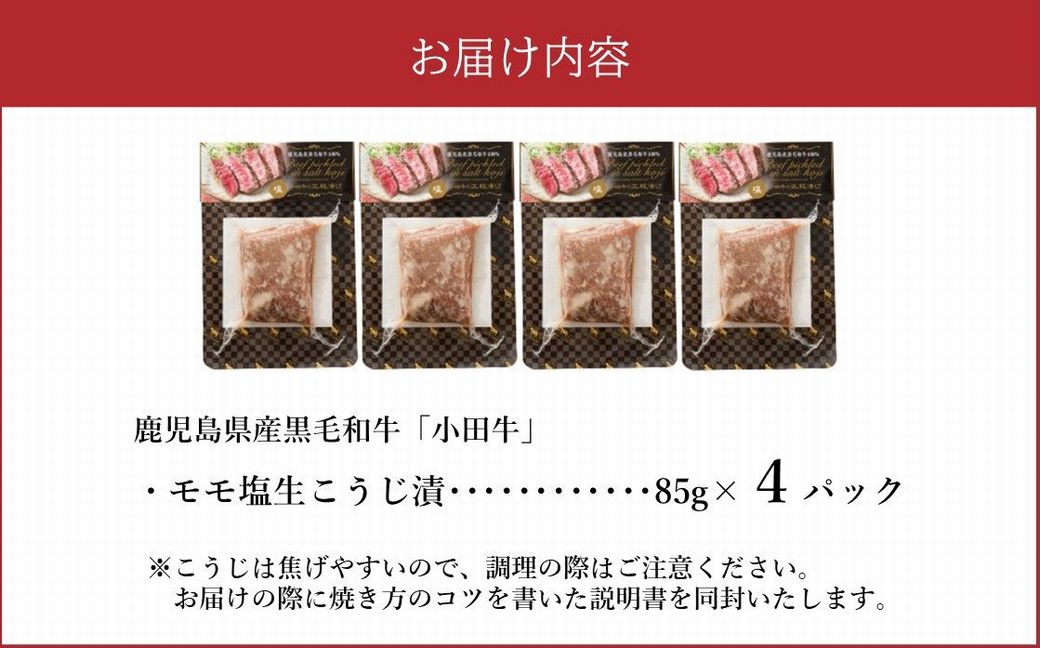 鹿児島県産黒毛和牛「小田牛」モモ塩生こうじ漬け85g×4パック
