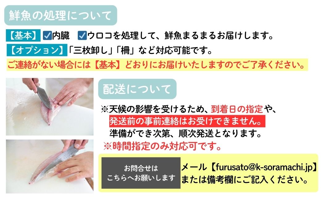 ※当返礼品は、発送日の朝、水揚げされた魚をお送りしますので、天候等で漁ができない場合や水揚げ量に差があります。