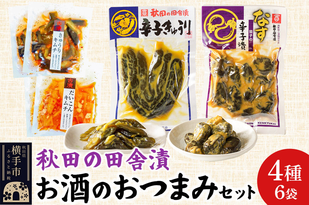 ■名称:秋田の田舎漬 お酒のおつまみ 4種6袋セット【辛子きゅうり・茄子の辛子漬・きゅうりキムチ・だいこんキムチ】 お茶請け 肴 ご飯のお供