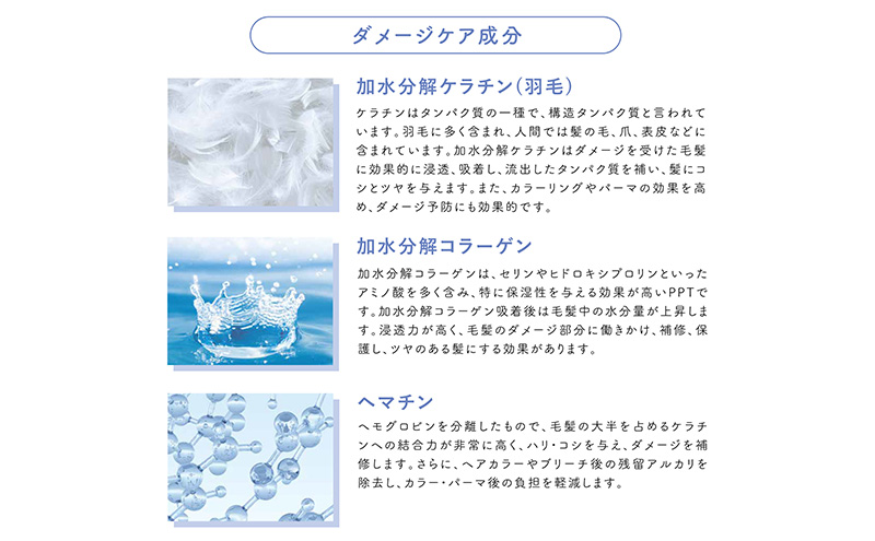 ・黒部の名水(注1) ・加水分解ケラチン(注2)・リピジュア(R)(注3)ヘマチン(注4)