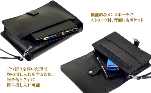 【個性的なデザイン!2つ折り形式の牛本革メンズセカンドポーチ】