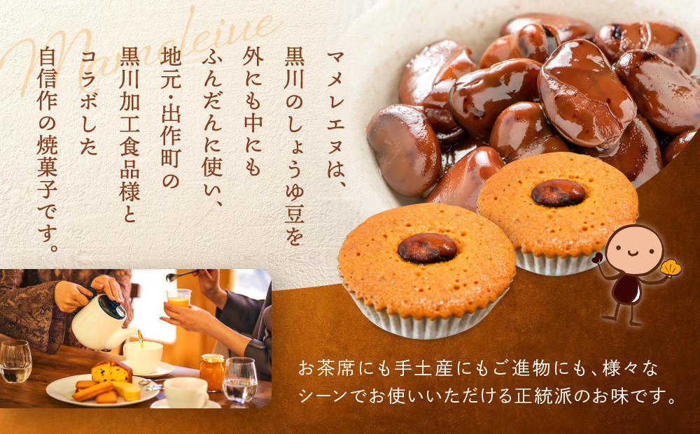 既存のマドレーヌにはない、栗のパウンドケーキのような深い味わい、ひなには稀なというよりは、田舎でしか味わえない、ふんだんにしょうゆ豆を使ったご当地型マドレーヌです。香川の先人が残した伝統食を、後世に伝えるというコンセプトで黒川加工食品さんとコラボして開発しました。小さいけれども美味しい県香川です。