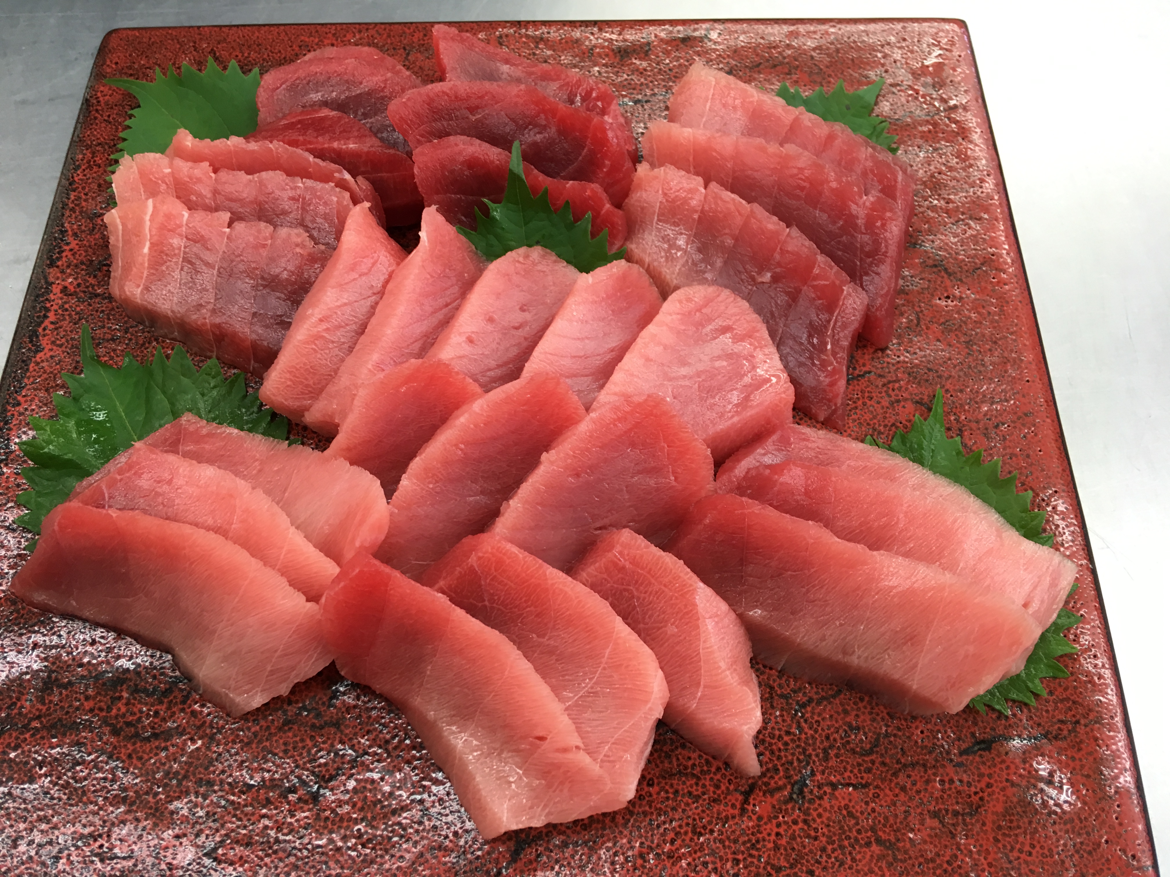 極上なお刺身、脂ののったマグロの背中側の背トロ、中トロと赤身が楽しめます。