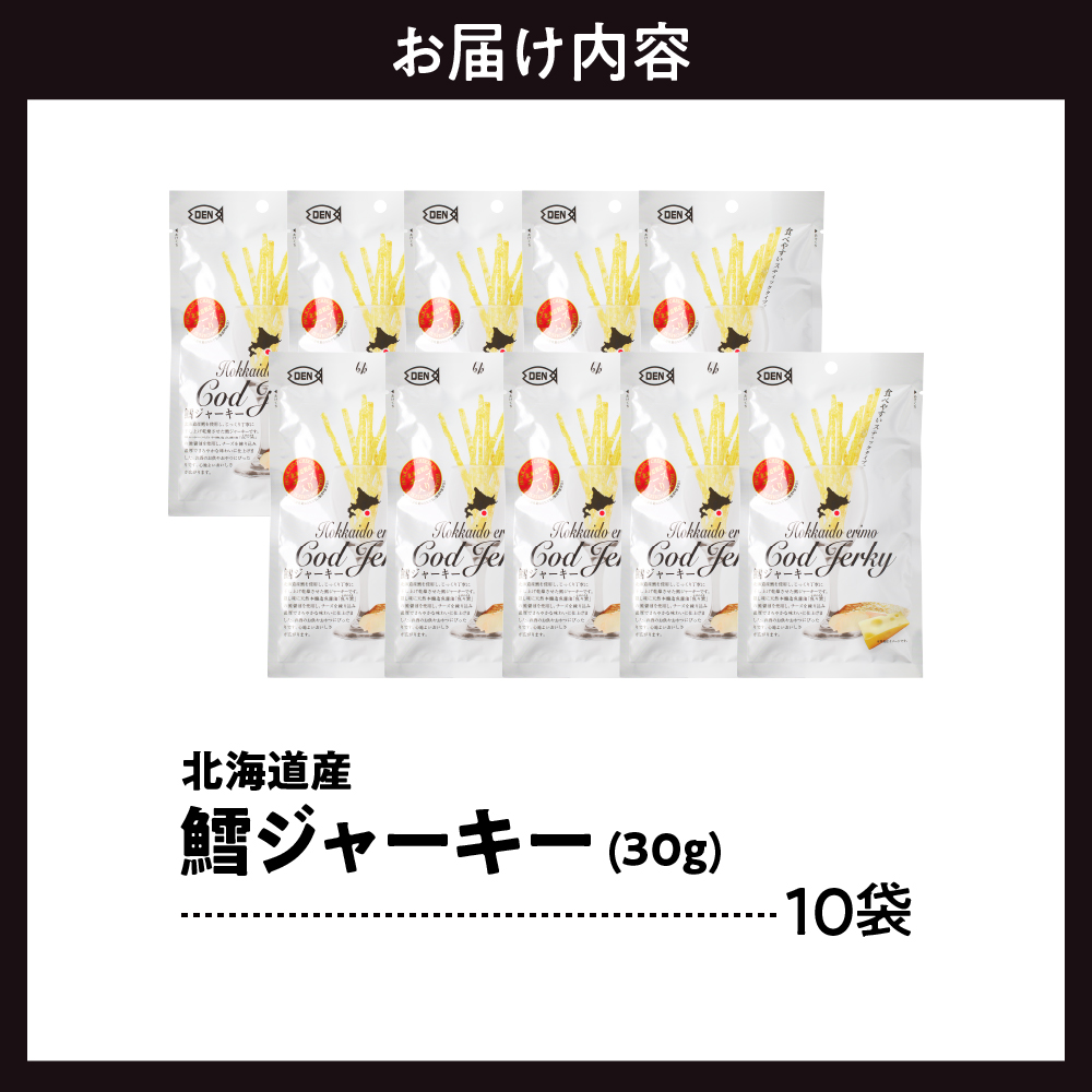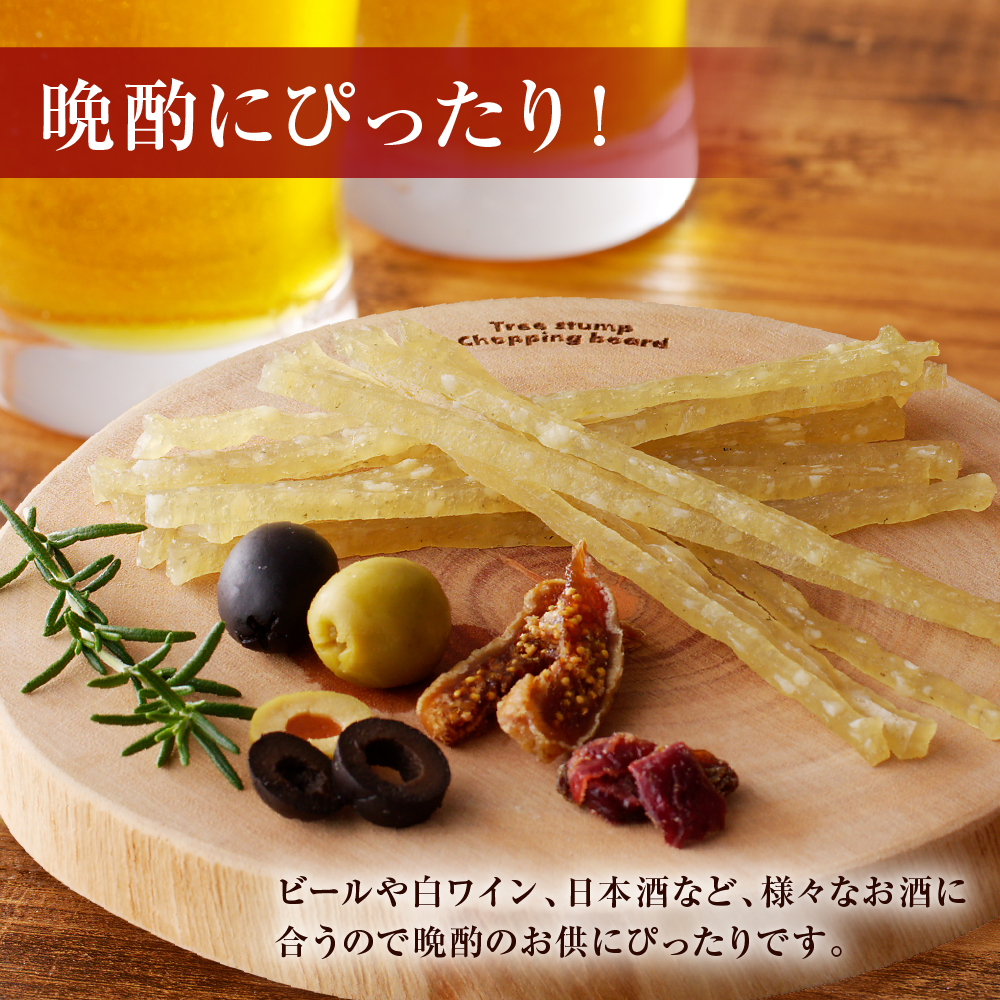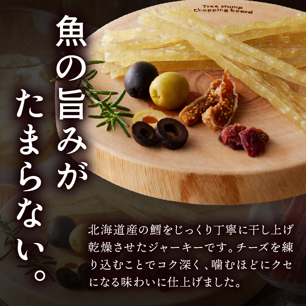 北海道産の鱈を使用し、じっくり丁寧に干し上げ乾燥させたジャーキーです。