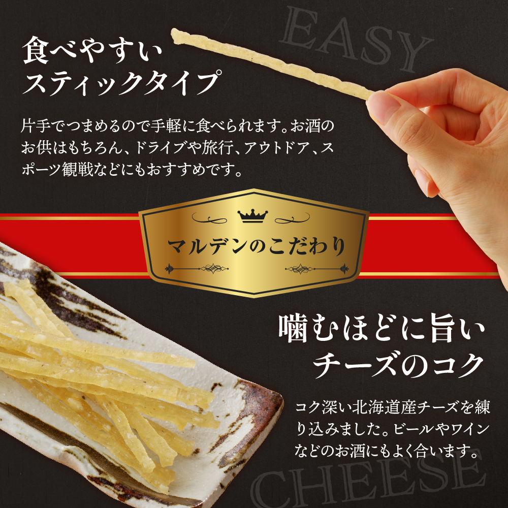 たら(北海道産)、砂糖、プロセスチーズ(北海道製造)、米発酵調味料、醤油(大豆・小麦を含む)、食塩、みりん、魚醤(さけを含む)、こしょう/ソルビトール、pH調整剤、調味料(アミノ酸)