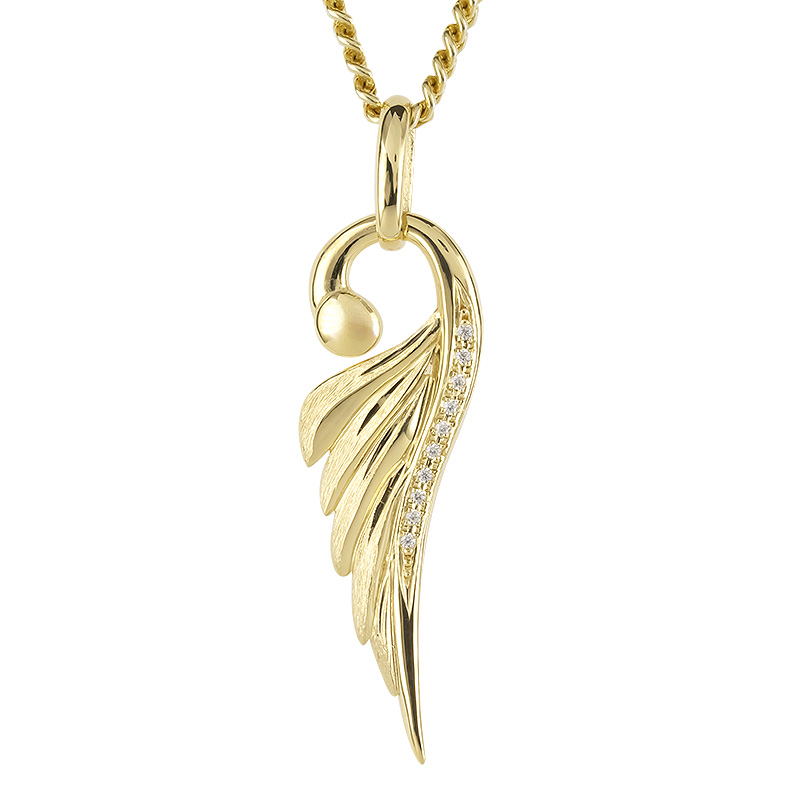 飛躍や運気上昇を象徴するフェザーを、細部までこだわったペンダントトップ