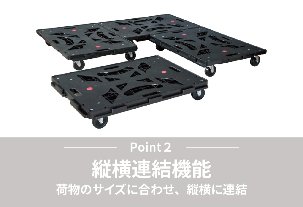 3.荷物の大きさに合わせ、縦横へ自由に連結可能