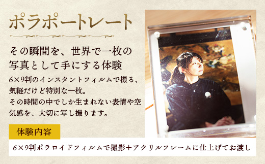 6×9判ポラロイドフィルムでの撮影+アクリルフレーム仕上げ。 〈所要時間:約20分〉