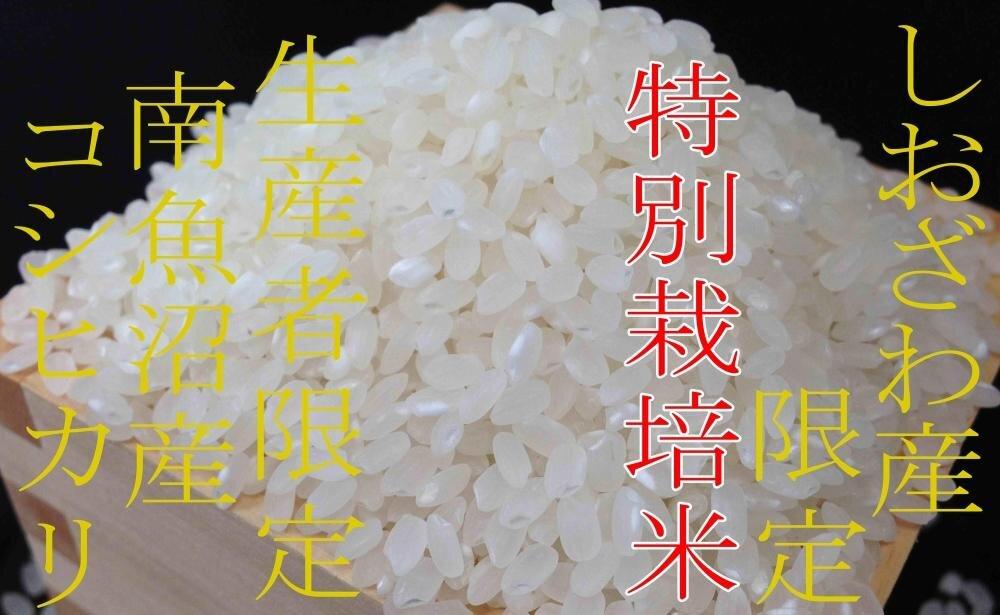国内屈指の豪雪地域である南魚沼しおざわ地域、その豪雪を源とした豊富で清涼な水とコシヒカリ栽培に好適な盆地特有の昼夜の寒暖差のある気候と土壌との三条件が相まって生育された【南魚沼しおざわ産コシヒカリ】