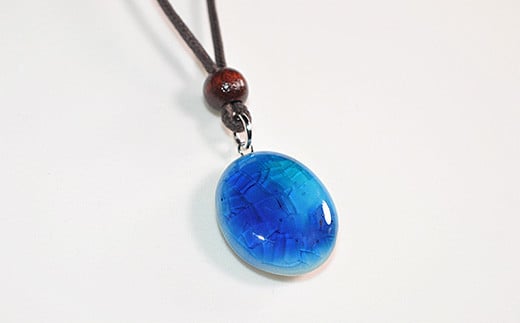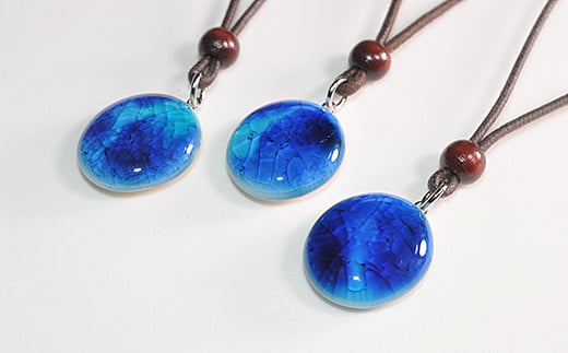 陶器の裏に金具貼り付け、丸カンで紐に通してあります。