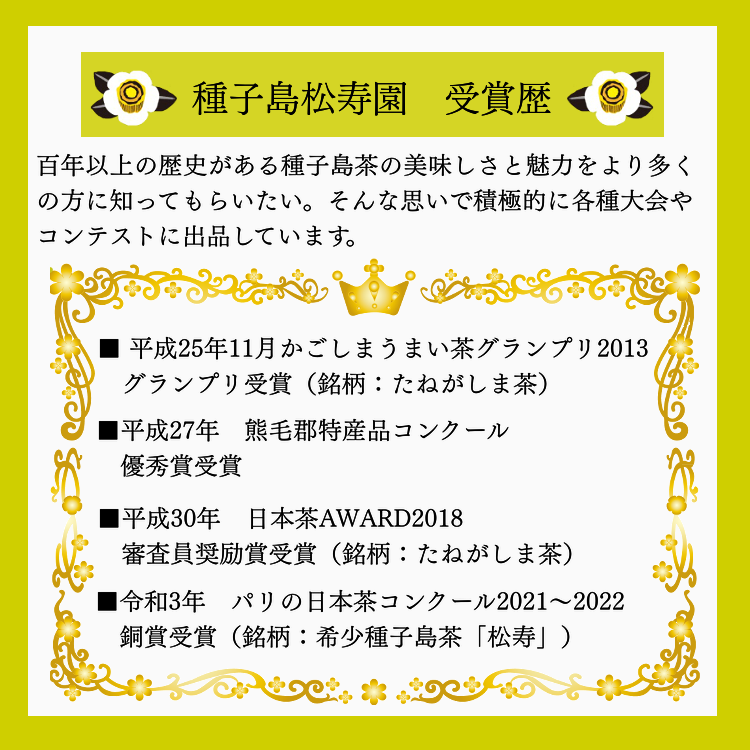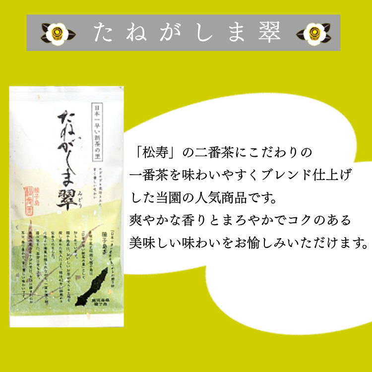 この土地で大切に育てた「松寿」の二番茶に、こだわりの一番茶をブレンド仕上げし、お求めやすくご提供しています。