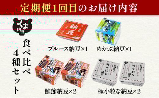 【1回目】ブルース納豆×1個、北海道のめかぶ納豆×1個、北海道の鮭節納豆×2個、北海道産極小粒な納豆×2個