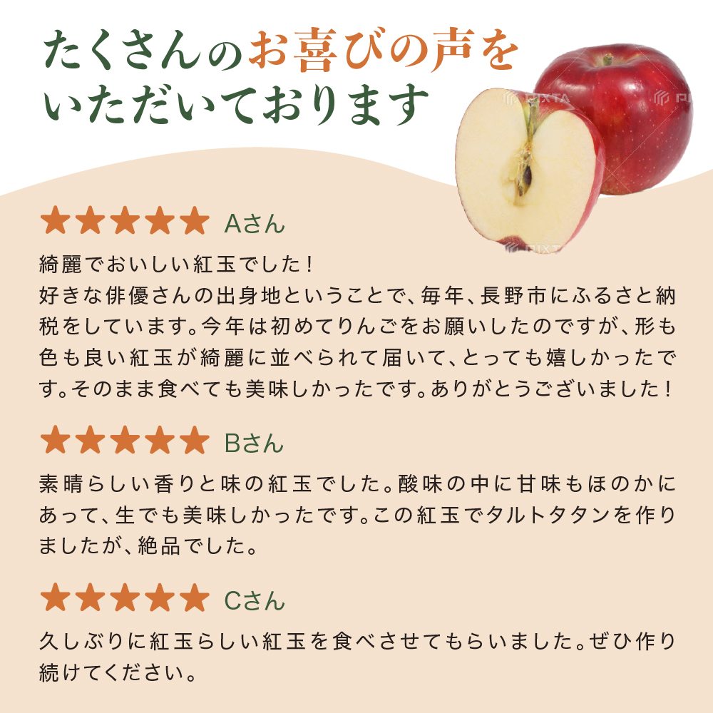 紅玉屋では収穫期になると全国のお客様よりご注文が殺到する、絶大な人気を博している魅力的なりんごです。