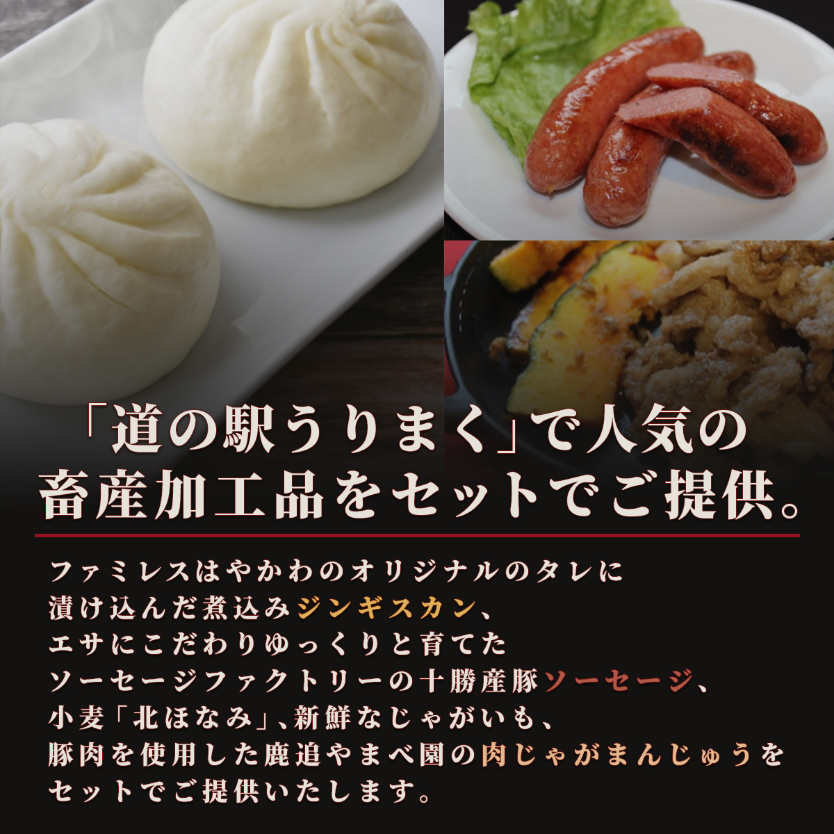 鹿追やまべ園の小麦、新鮮なじゃがいも、豚肉を使用した肉じゃがまんじゅうをセットでご提供。