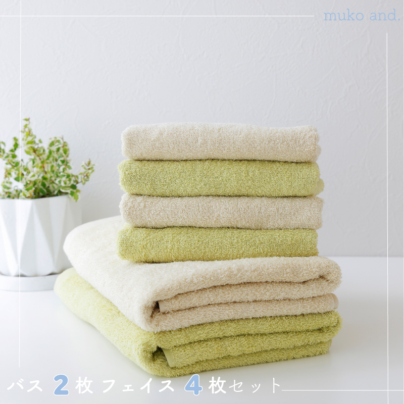 ・フェイスタオル4枚(ライムグリーン2枚、バニラ2枚)