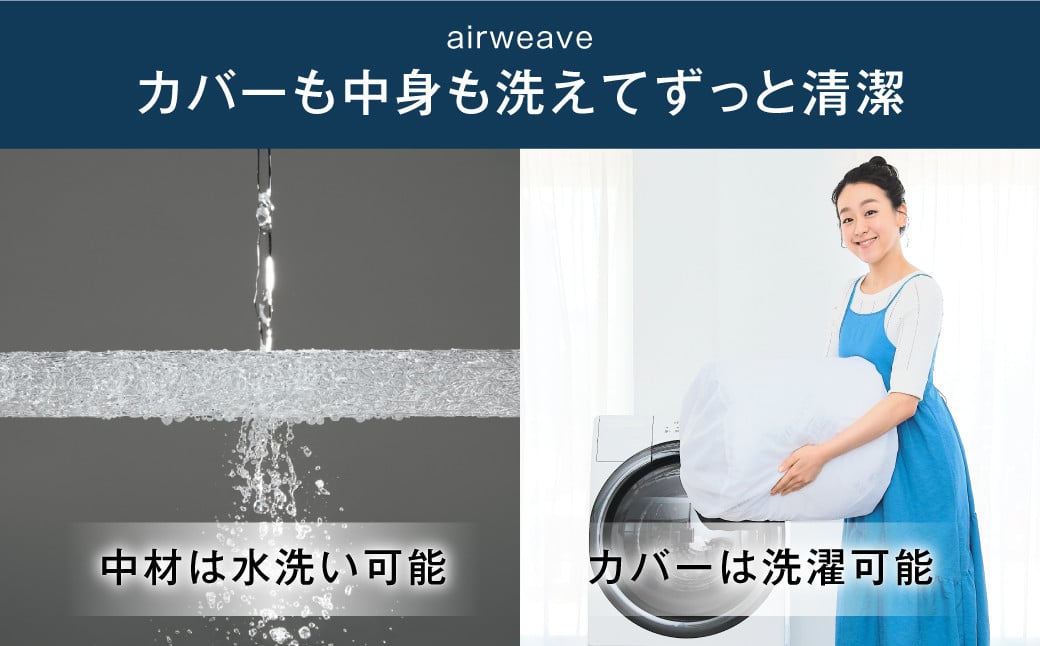 カバーの取り外しも可能で、カバーも中のエアファイバー®も洗えて清潔です。