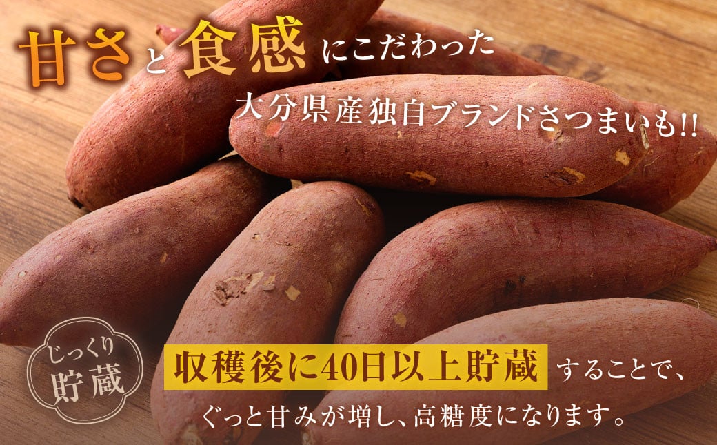 大分県産紅はるかで、収穫後に40日以上貯蔵することで、ぐっと甘みが増し、高糖度になります。