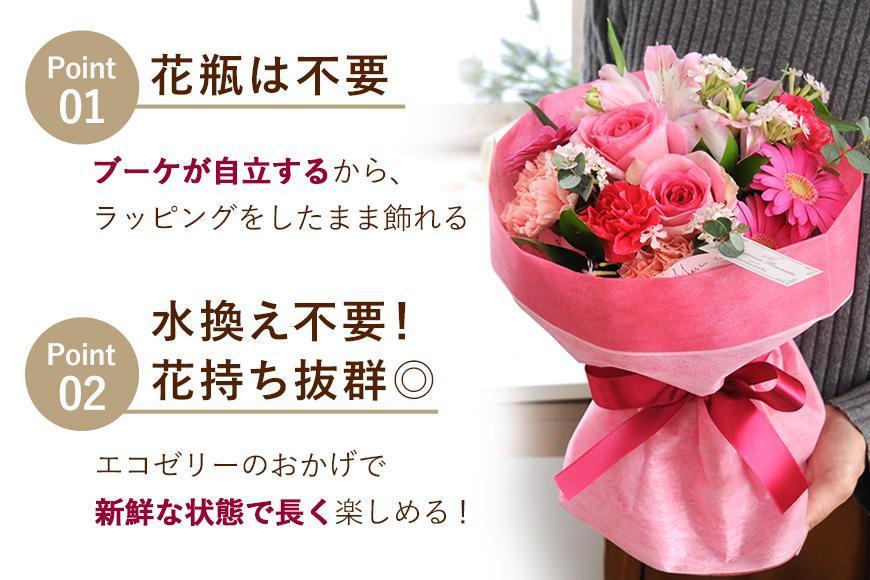 水換えの手間も不要で花持ちもよい花束です。