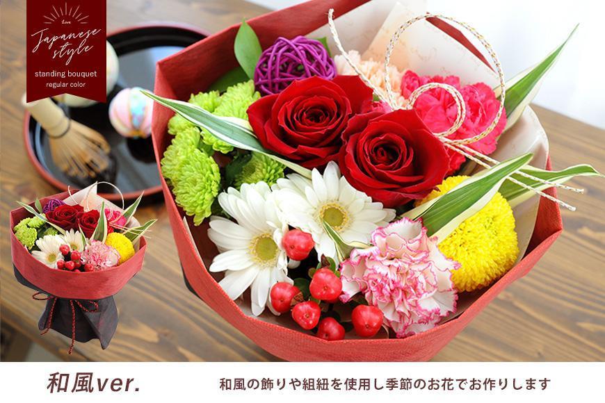 自立する花束(スタンディングブーケ)として制作されているので