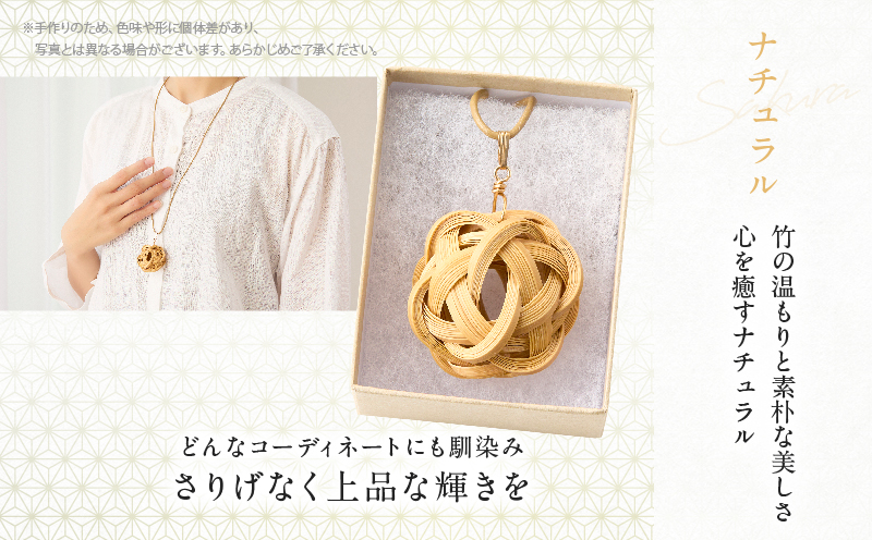 竹ひごを束ね編みしたペンダントは、春の訪れを感じさせる優雅なデザインが特長です。
