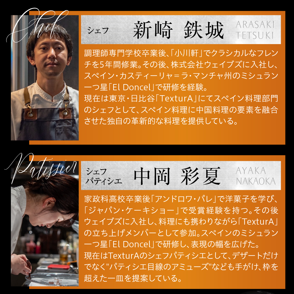 現在は東京・日比谷「TexturA」にてスペイン料理部門のシェフとして、スペイン料理に中国料理の要素を融合させた独自の革新的な料理を提供している。