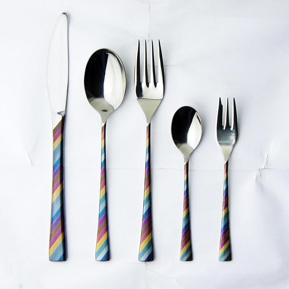 ●素材・材質:18-8ステンレス(SUSXM7) / ディナーナイフのみステンレス / 多重発色+発色面クリア焼付塗装