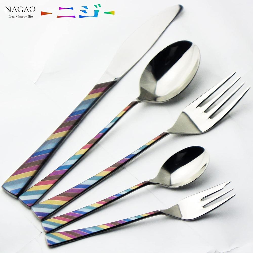 ナガオ -ニジ- カトラリーシリーズ。それは、新潟 燕三条にて18-8ステンレスで製造された現代的なフォルムのカトラリーに多重発色技術を施した製品である。