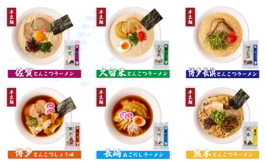 佐賀、久留米、博多長浜、博多、長崎、熊本の九州ご当地スープで食べ比べができるセット(全6種)の計6食入り!