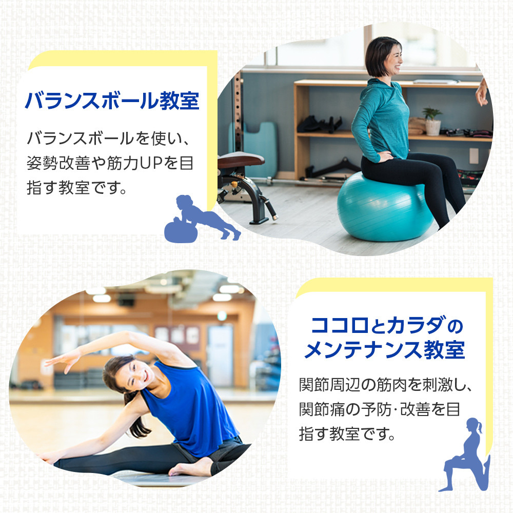関連キーワード:ヨガ バランスボール 筋力アップ 体育館 総合体育館 回数券