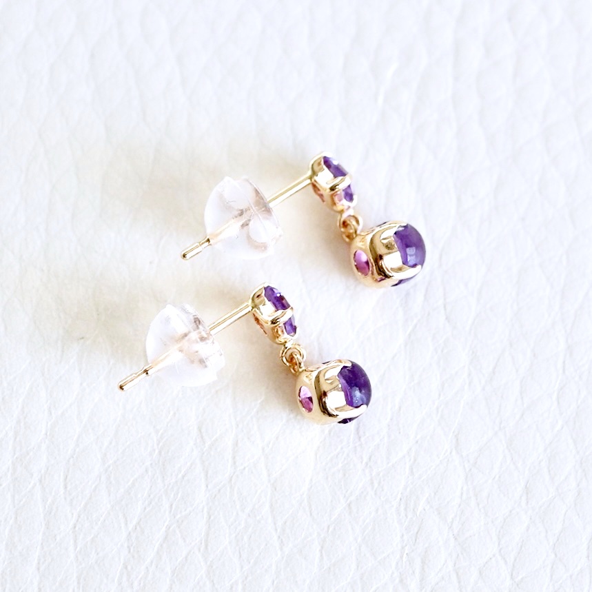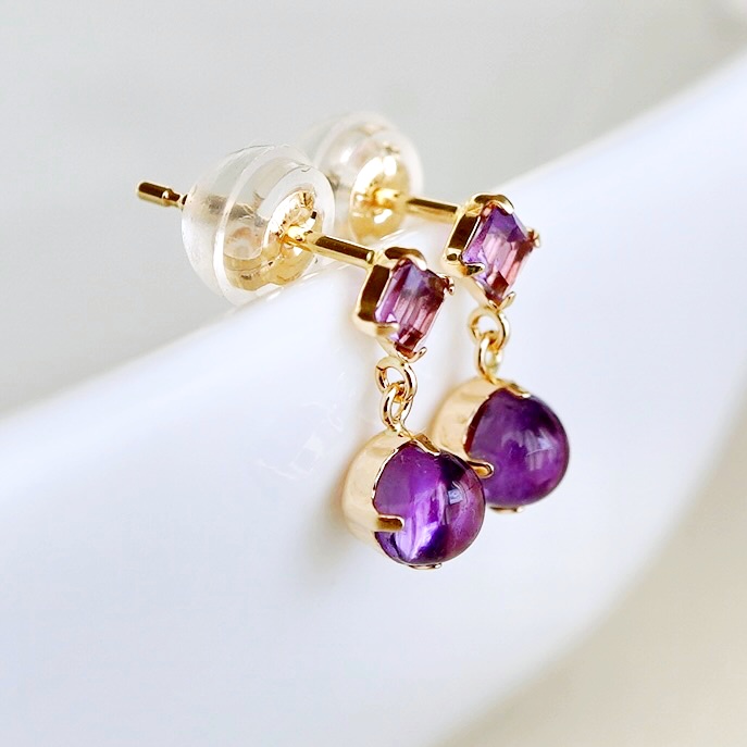 アメシストが揺れて煌めくピアスです。