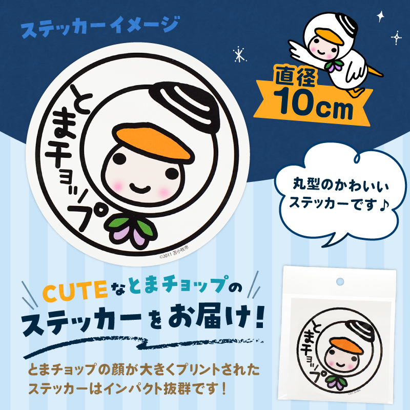 とまチョップの顔が大きくプリントされたステッカーはインパクト抜群です!