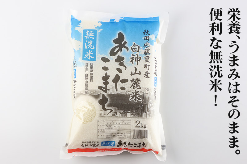 世界自然遺産『白神山地』山麓の、豊富な伏流水を恵みとして育んだ「無洗米 白神山麓米」(あきたこまち)は食味、風味に定評がある逸品です。