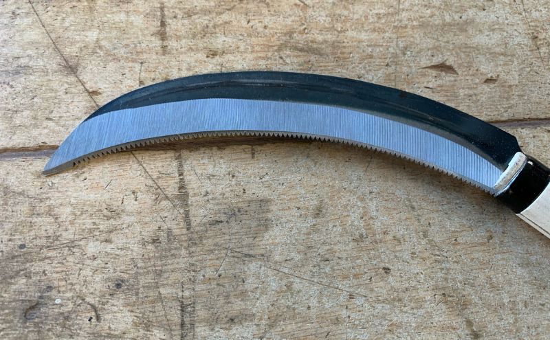 ・草刈鋸鎌(刃長:170mm、柄:約200mm、直径約25mm、赤グリップ:約9cm)