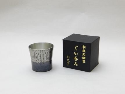 ぐい呑みの着色は伝統工芸である鎚起銅器の着色技法により色を施してあります。