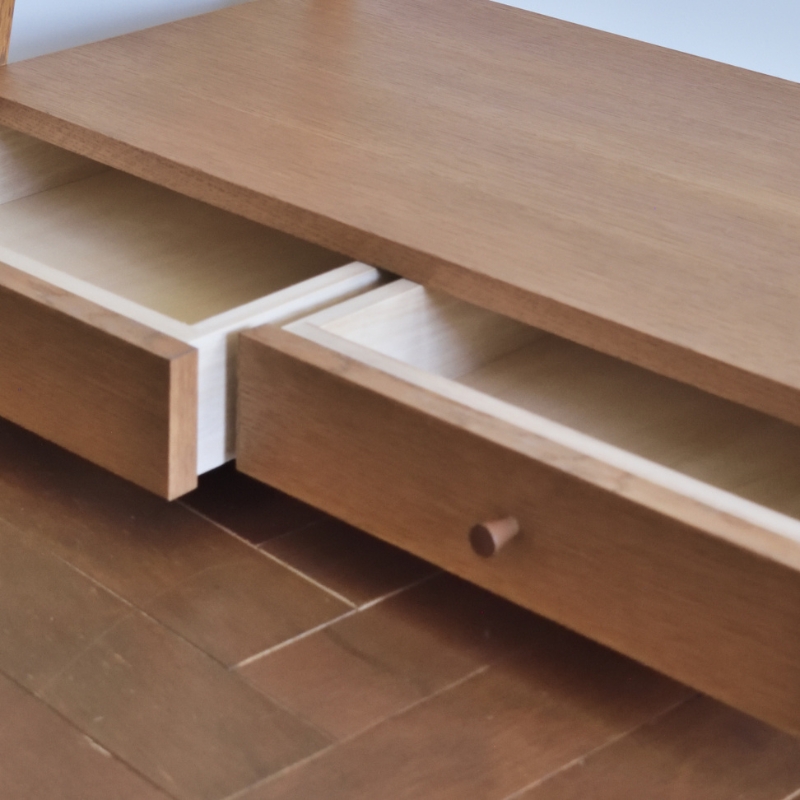 オカモトカグでは一級家具製作技能士の資格を持つ職人の精度の高い技術と、モダニズムの洗練されたデザインを取り入れたオリジナル家具・オーダー家具の専門店です。チーク、オーク、ウォールナットなどの材料を使い、シンプルでゆとりのある家具を目指しています。材料を大切に使い、無駄のない製作工程も考えながら、職人のこだわりの技術でひとつひとつ丁寧に製作しています。