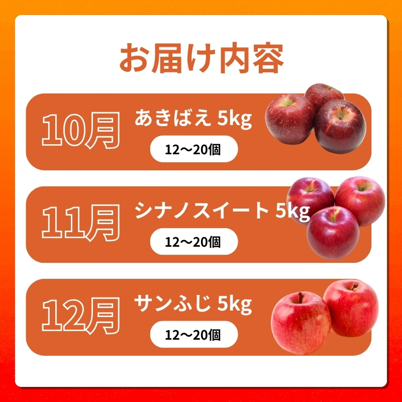 毎月品種の異なる季節のりんごを3ヵ月連続でお届けします。