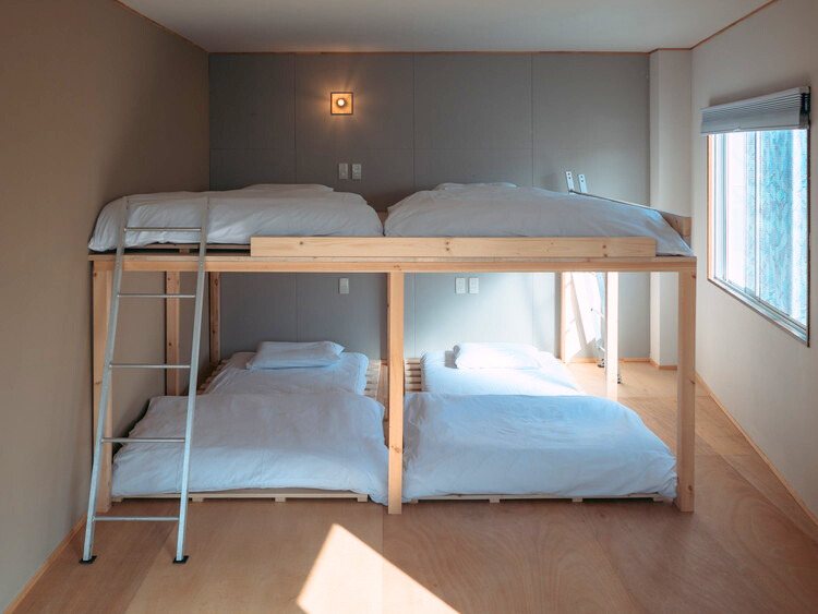 鹿沼のまちなかの宿泊施設。2段ベッドと作業デスクを配置した4人個室、シンプルな小上がりにデスクを完備した小さな個室、風呂トイレ付きゆったり広々大人6名個室の合計3部屋。お子様連れ歓迎、街歩きや観光にもオススメです。