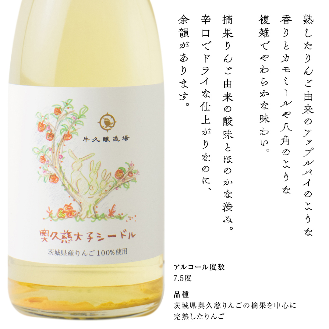 茨城県大子(だいご)町、奥久慈りんごの摘果を中心に完熟したりんごも加えてナチュラルでキレのあるシードルをつくりました。